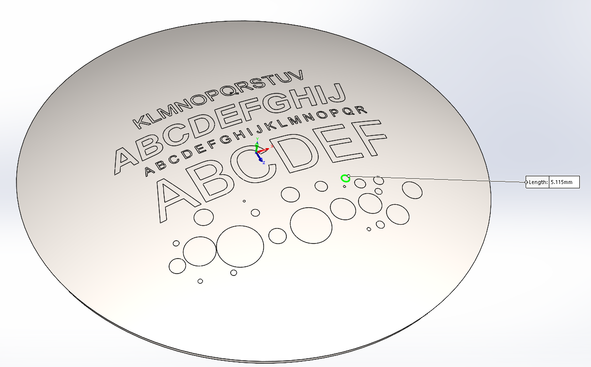 Now that's just for the "LoadCurves" function in SolidWorks.  If I use the "LoadPart" function in the SolidWorks, the curves on the surface of my object in RoboDK have much more resolution to them.  The picture "RoboDK Imported Part" shows what the path looks like for tracing the circle dimensioned in the "SolidWorks Object" picture.  I can't use this method of creating my path follow program because it is impossible to select the curves from the surface of the part due to how small it is, and I also do not want to import every geometry of the part.