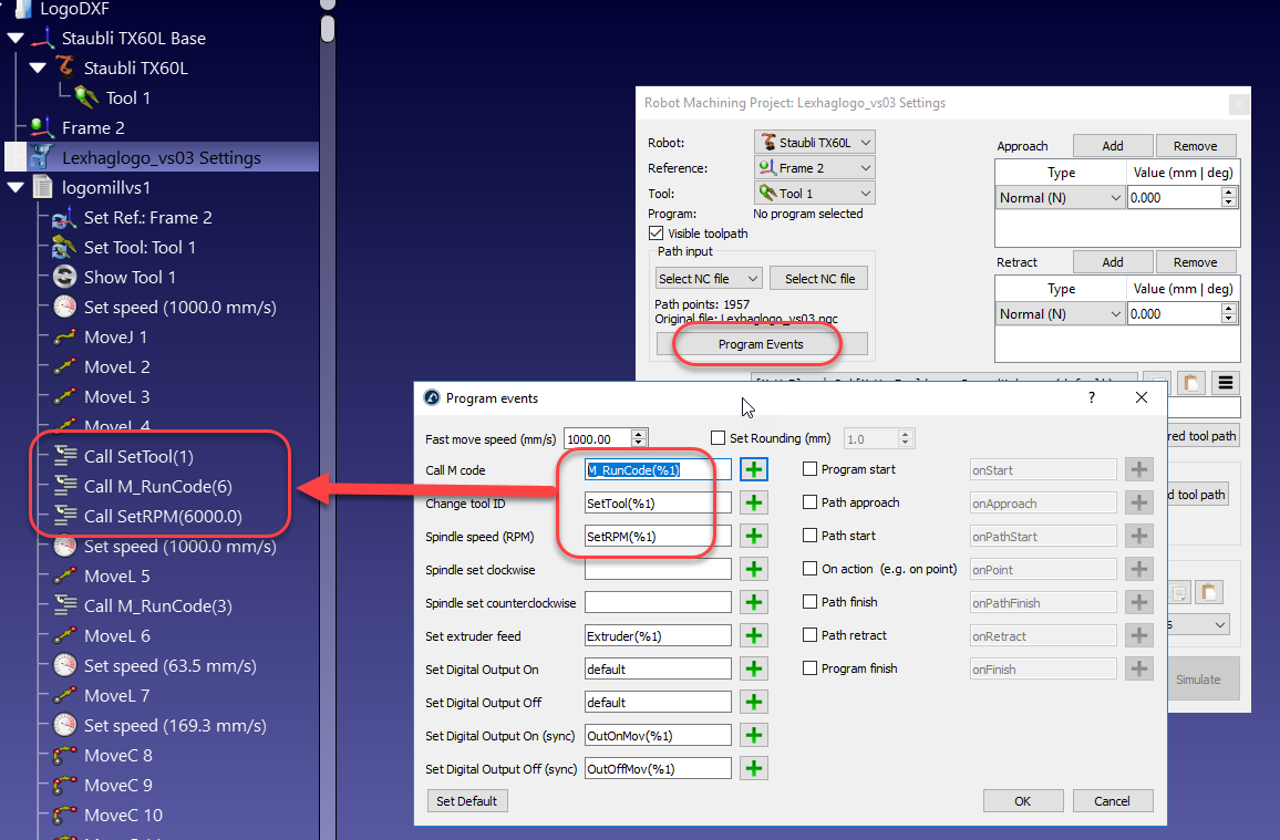 This feedback is great. I noticed that one variable of the Stäubli Inline Move post was not being declared. I recommend you to try again with this post processor (just place it in C:/RoboDK/Posts and regenerate your robot program).