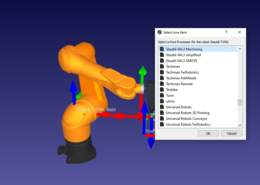 I am using the VAL3 Machining post processor, even tried all the other Staubli post processors inside the RoboDK and every time it gives me an error that says application not found.
