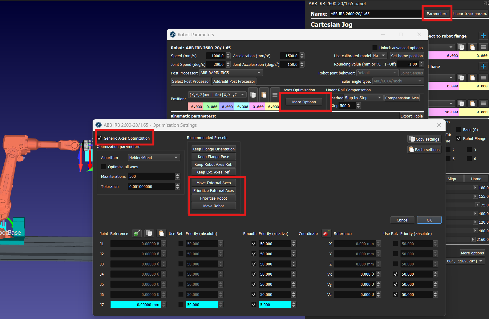 You can enable the Generic Axes Optimization option to properly configure how you want the robot to behave when you are jogging it manually to create new targets. You can enable this option here: