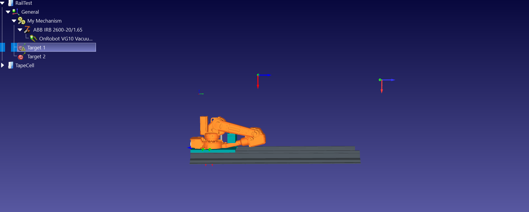 The issue is: if I displace a target (be it cartesian or joint) in space by modifying its position and not by operating a "Teach Target" (so it doesn't contain any rail information) in a position that is clearly reachable by moving the rail, it keeps saying "target not reachable" when I double-click on it or I click on "move to target".