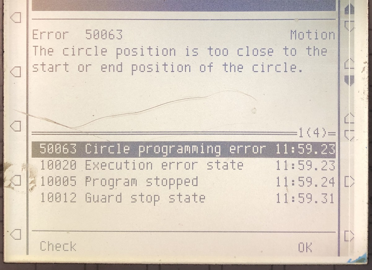 As above - ABB Error 50063 - The Circle Position Is Too Close To The Start or End Position of The Circle