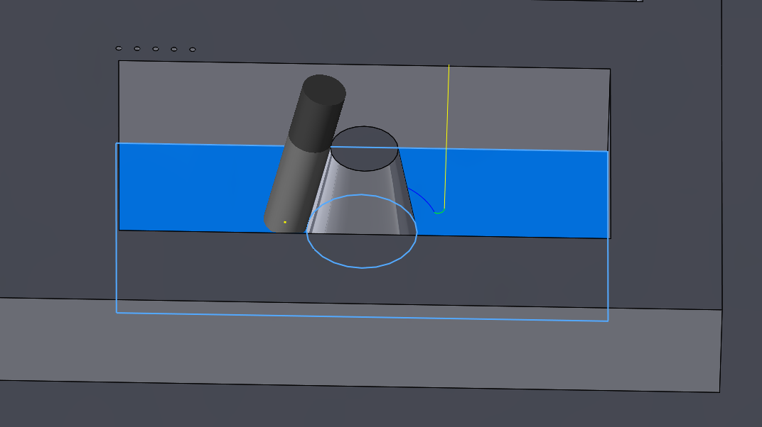 I am currently working on exporting a 5-axis robot machining path from HSMworks and importing it into RoboDK. As illustrated in the first image (captured from the HSMworks Simulation), the tool executes a circular motion around the cone, maintaining constant contact with the cone’s surface.