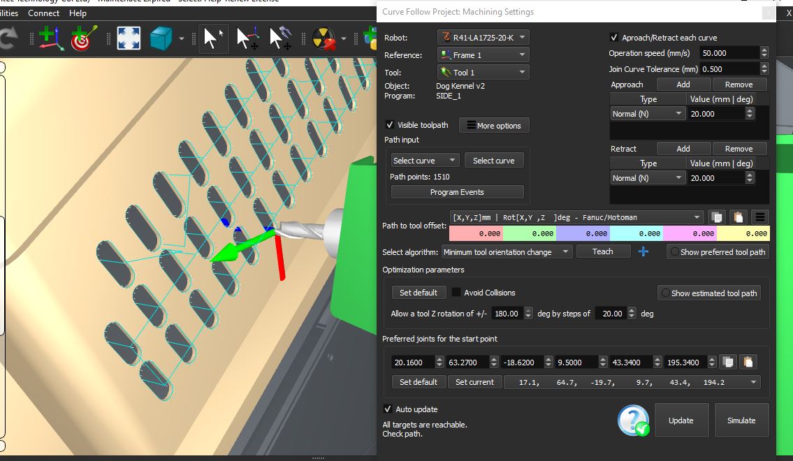 Alternatively, if you select or create a curve in RoboDK you can apply and offset towards the side of the curve by selecting Edit path settings.