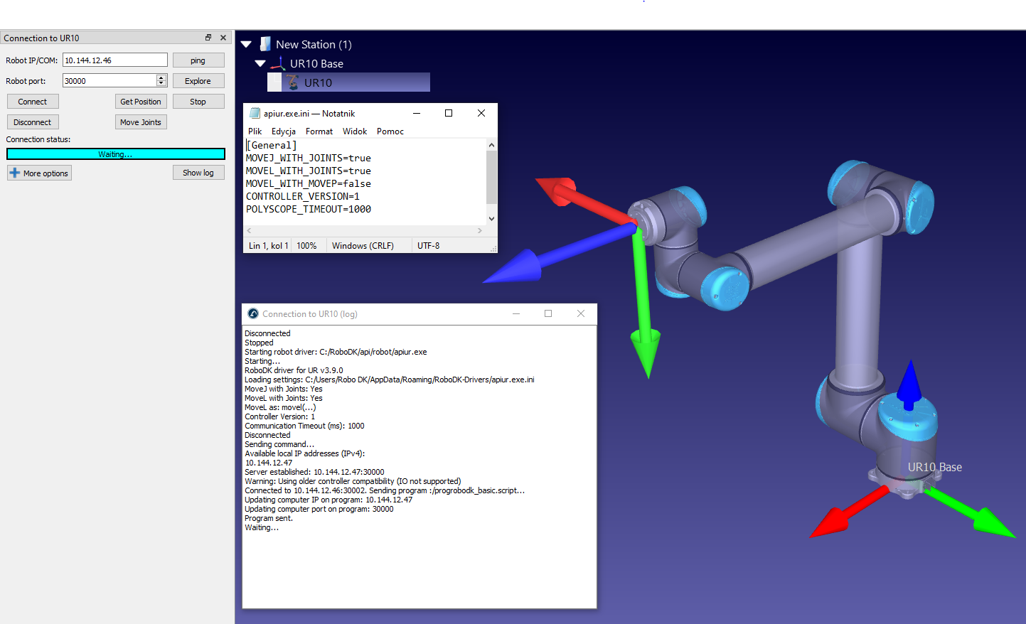 We would like to connect to it trough RoboDK, but it stuck on Waiting... status.