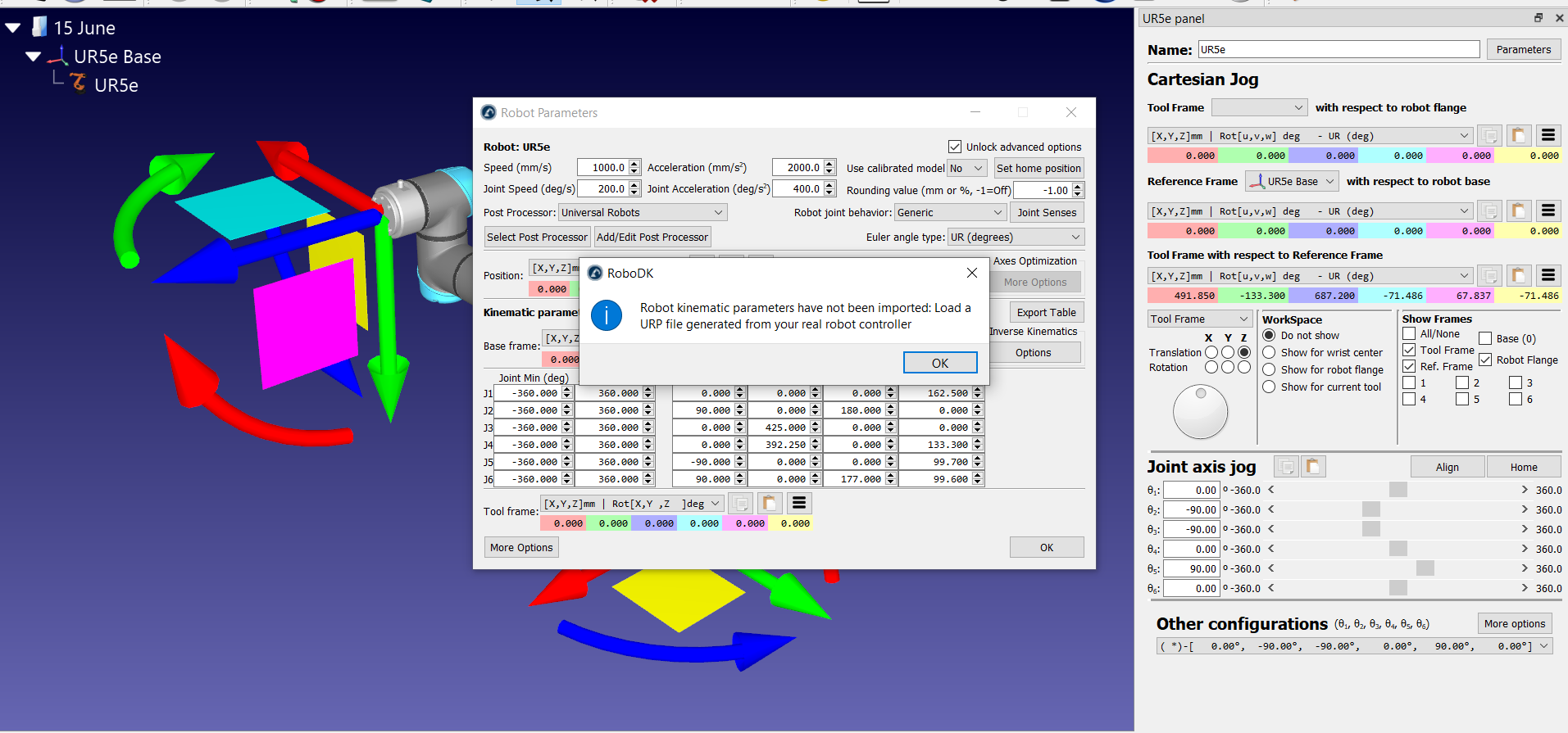 kinematics data of the robot from the urp(XML) file is "