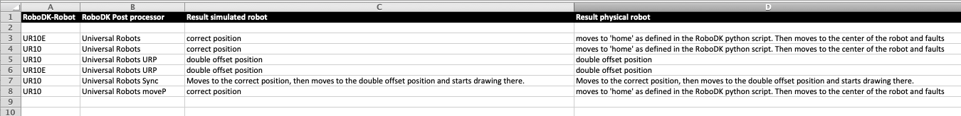 When I generate a robot program and simulate this in RoboDK or send to the robot, the arm starts drawing at a different offset. Instead of starting at the 'Frame draw' reference frame, it seems to make the same ('UR10 Base'—'Frame draw') pose again from the 'Frame draw' reference point, basically doubling the intended offset.