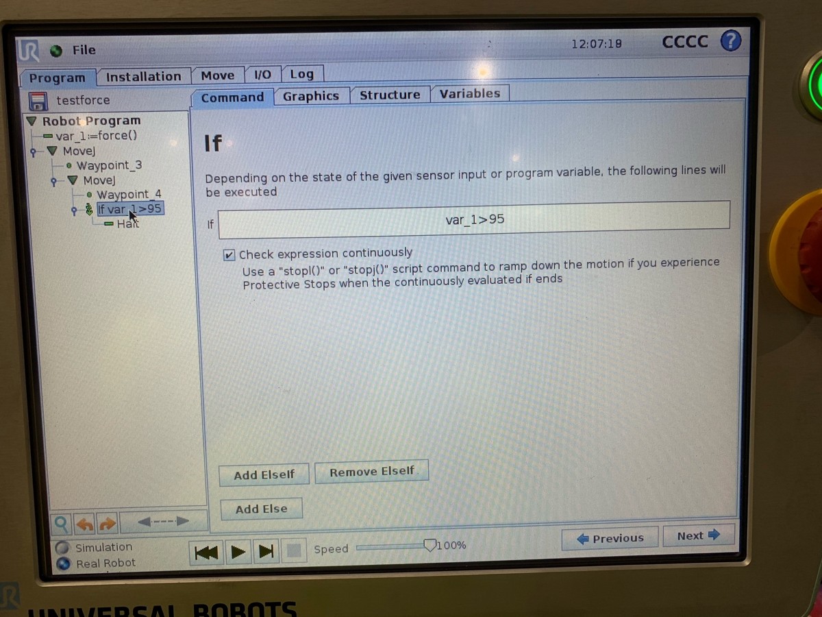 On the UR10 I can use the force function force() to halt the robot when it finds the part. What's the easiest way to replicate this on RoboDK? My guess is that I need a python script with the position of the part and a loop checking the force() variable. Is there an easier way?