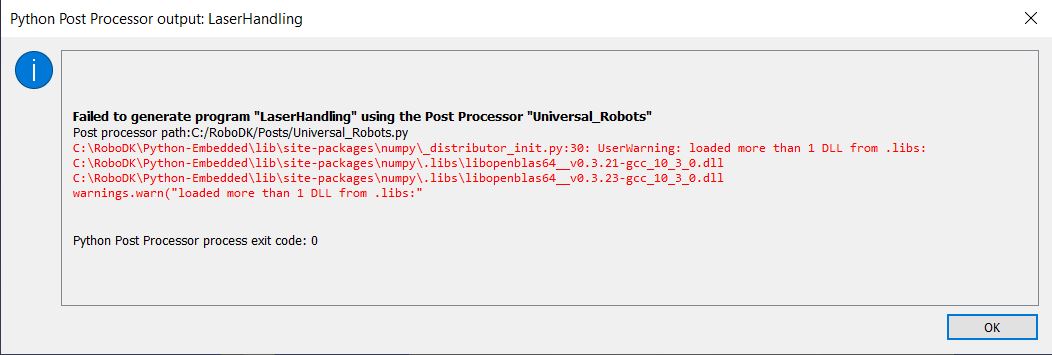 Can anyone help with this error about Generating Robot program for a UR5e cobot. Also connection to Robot is always showing Waiting status