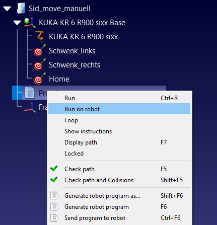 The other way round, if I activate 'Run on robot' (see attachment RoboDK_02) manually in RoboDK and then use a script to start the program, it is excecuted on the real robot as it is supposed to.
