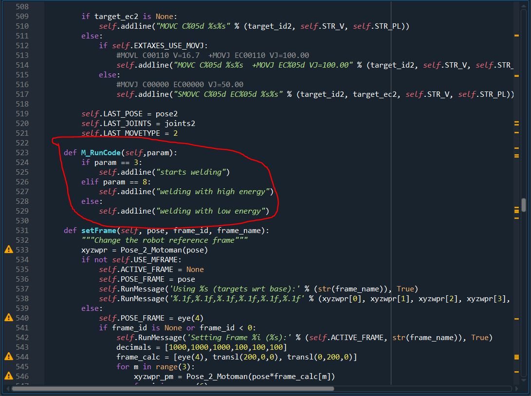 I’m actually trying to modify the postprocessor Motoman by integrating an M_RunCode(n) method, but for the moment nothing is displayed in the robot code. You can see in the attachment what I did now. For the moment I’m displaying commentaries in order to understand the code of the postprocessor.