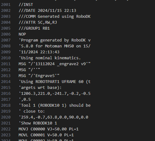 (11-09-2024, 08:32 PM)Albert Wrote: RoboDK can set user frames from your program automatically. This is not used by default as all targets are calculated with respect to the robot base or turntable base. However, you can enable this option by switching the flag USE_MFRAME to True. This will output a set of points required to update your coordinate system.