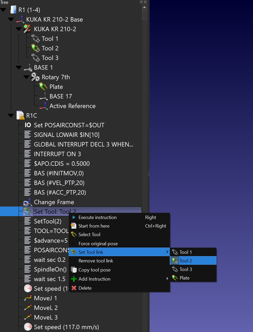 On the other hand, I noticed RoboDK won't link to your numbered tools or frames for KUKA SRC files. We'll improve RoboDK to support importing numbered tools and frames that exist on the station. For the time being it requires the workaround provided by Sergei by manually adding the Tool change instruction.