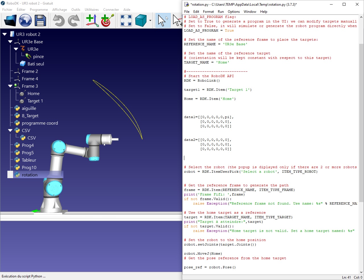 I have a problem with a python program, when I want to do a rotation with a UR3e robot the coordinates in x,y,z work, the coordinates in rx,ry,rz work but I only want a rotation on a single joint.