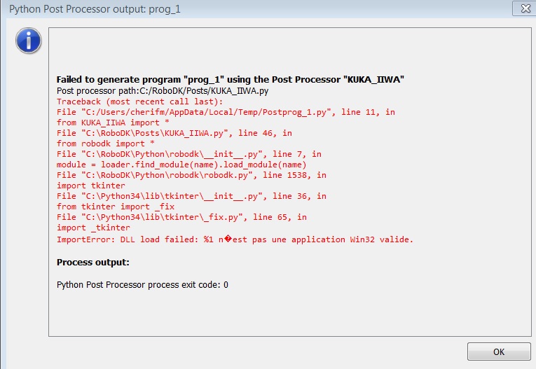 I'm trying to generate java code for iiwa lbr 820 for an short apt file presented bellow. robotdk post pro generates an error message (see bellow).