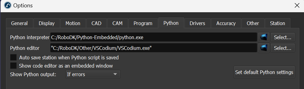 Yes, I can generate a robot program with the "Add new program" instruction, but not with a python program and my python interpreter has the same options than yours