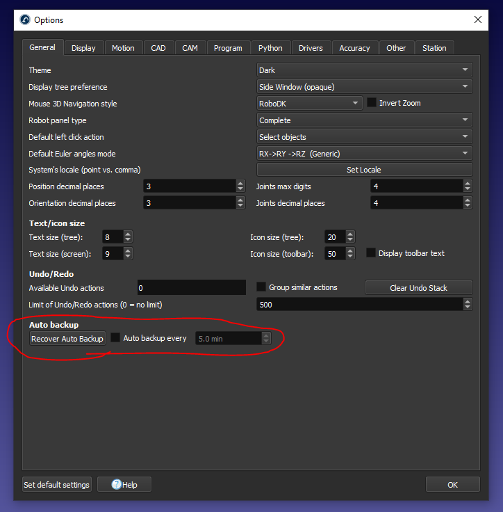 Edit: RoboDK in fact has Auto-Backups, but I they are not turned on by default.