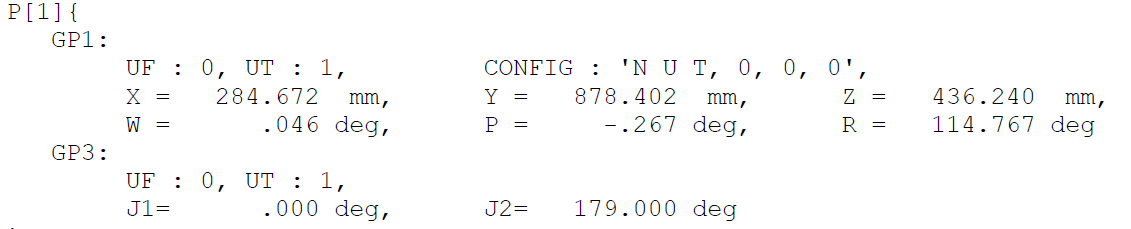 In my workcell, there are two groups (GP1 : robot, GP3: turntable). In python program I use the function "MoveJ(joints)" to turn external axis. When the LS program is generated, I get every thing in joints fomat even for the robot. How to get "x,y,z,w,p,r" fomat for the robot and "joint" fomat only for the external axis as shown in the attached file ?