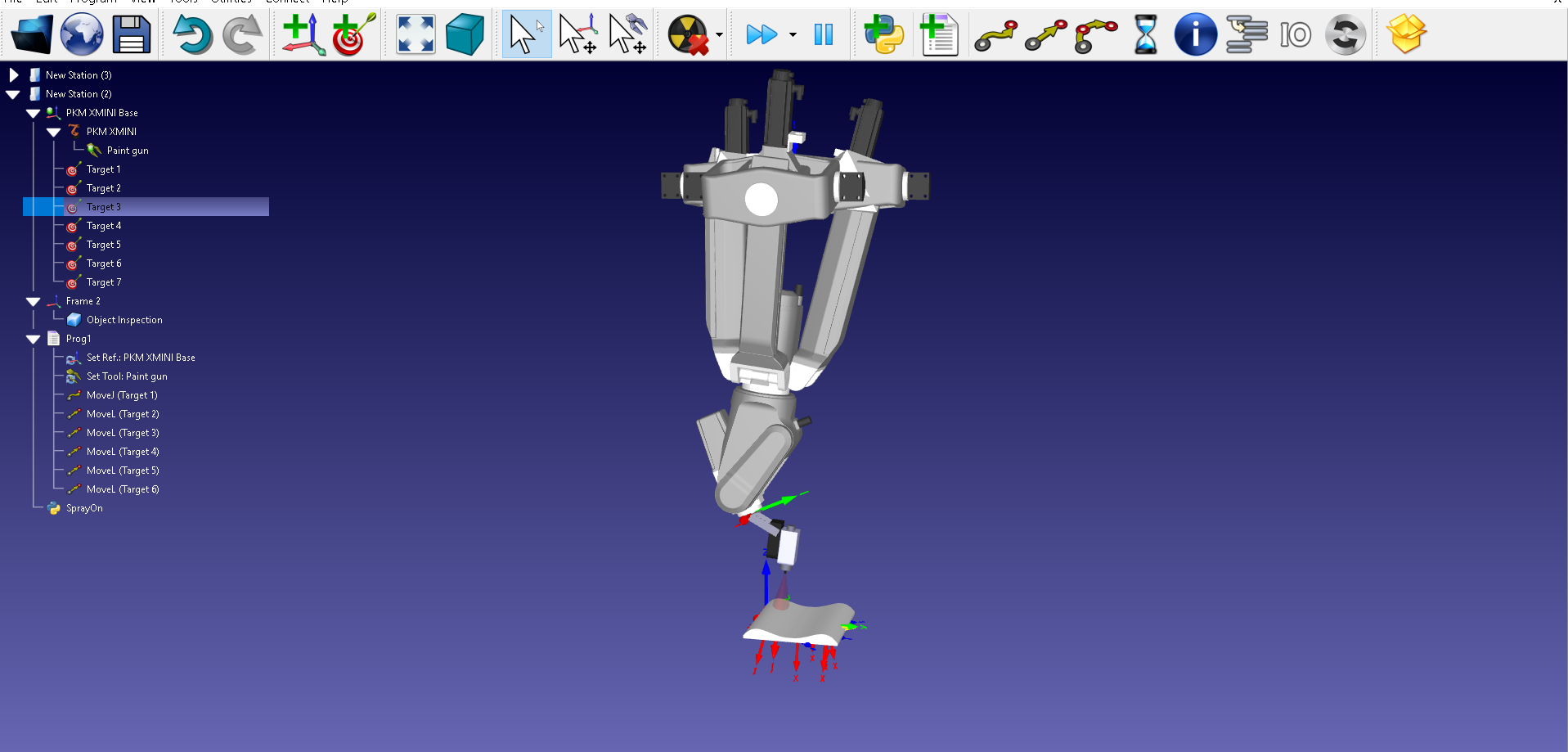 Please download the latest version of RoboDK from our website and create a new station with the SprayOn script.