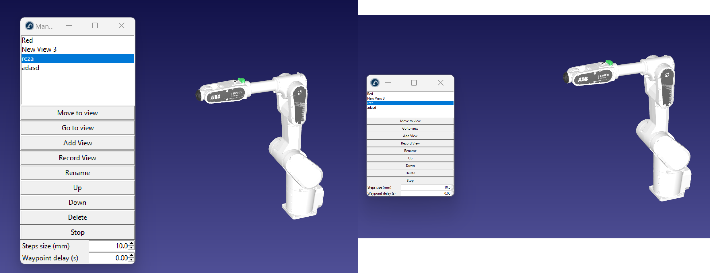 Today, I updated my RoboDK software from version 5.6.3 to version 5.6.4. However, after the update, I noticed that when I use the View Manager to record a scene, the size of the View Manager window and the corresponding font appear to be too small.